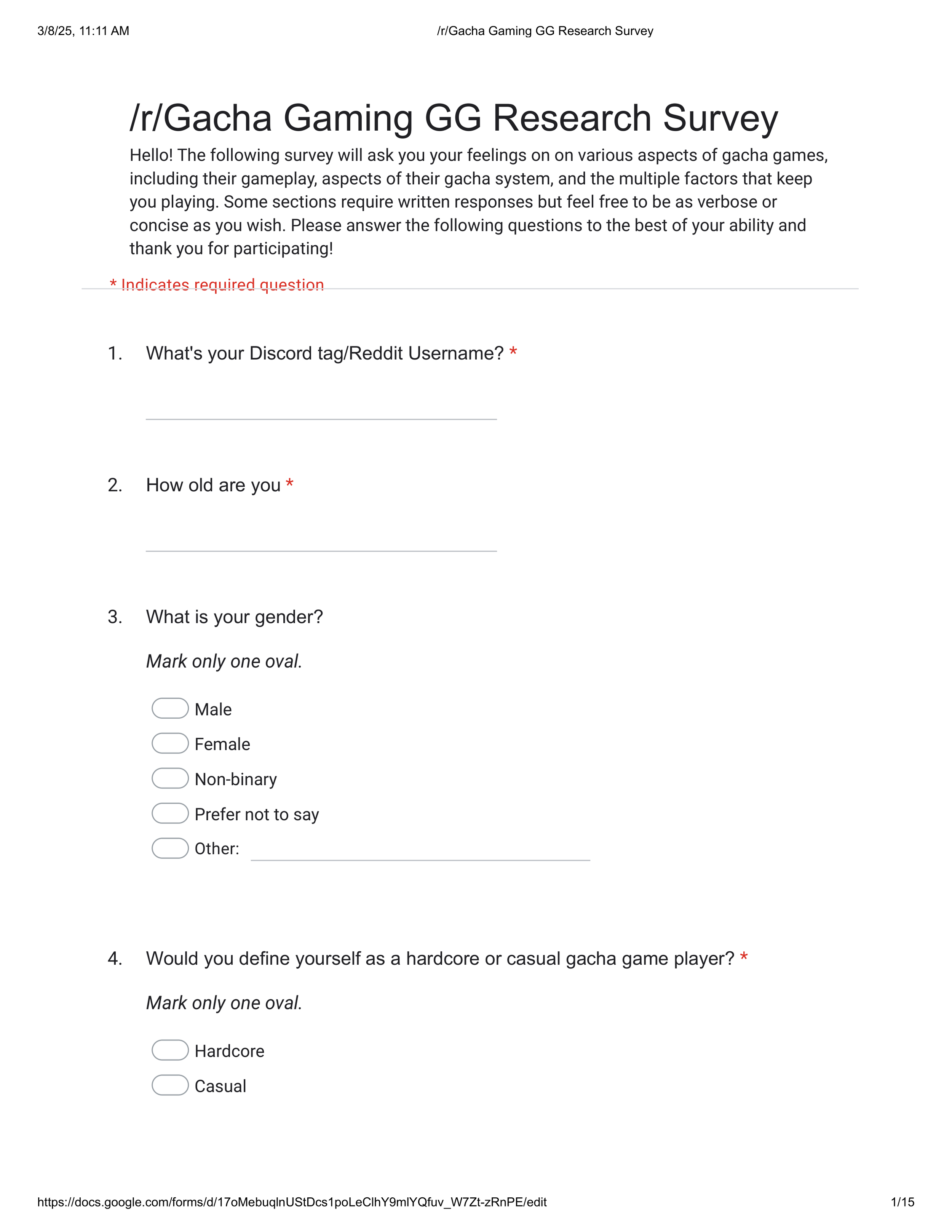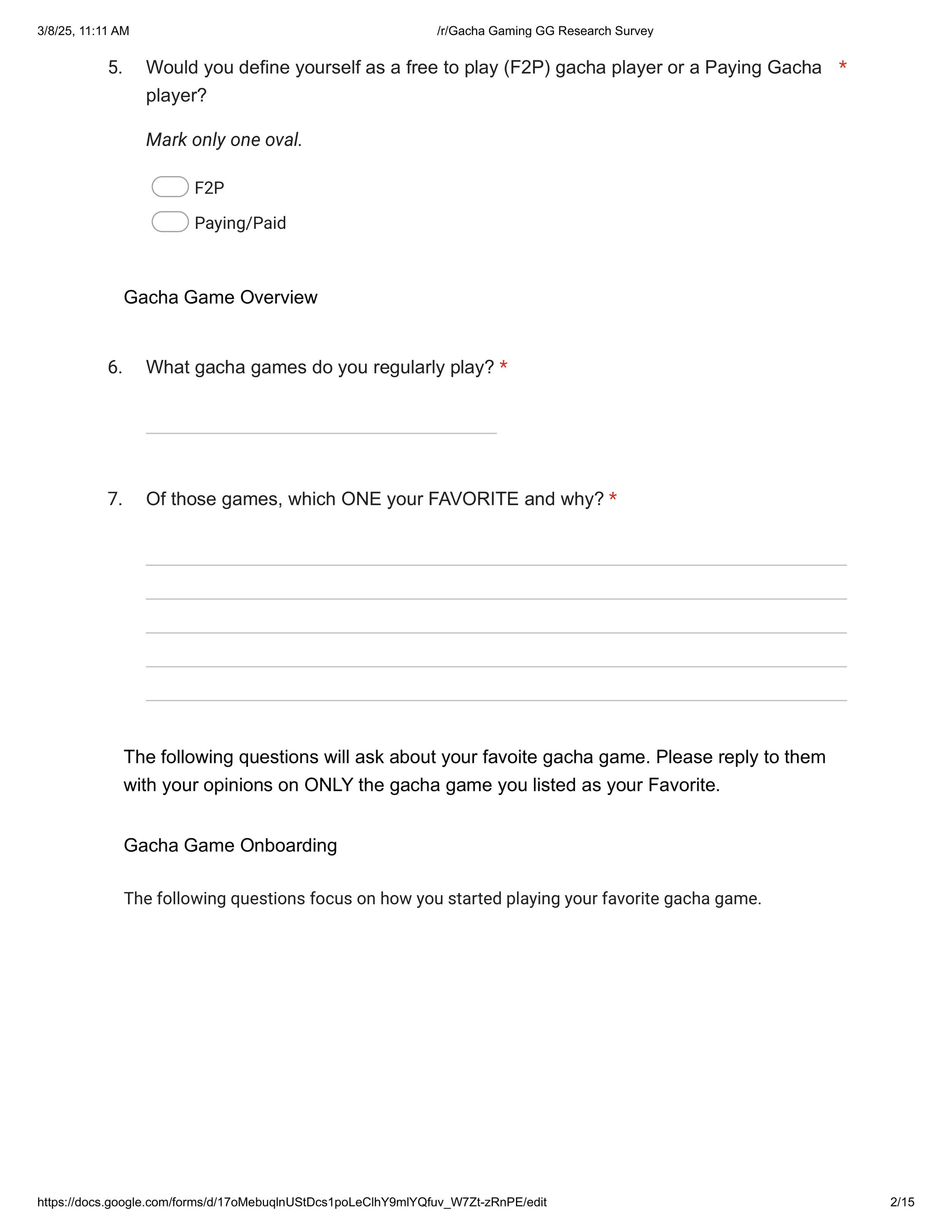I was tasked with surveying our prospective player base to discover what typical Gacha Game players wanted most out of a new gacha game.